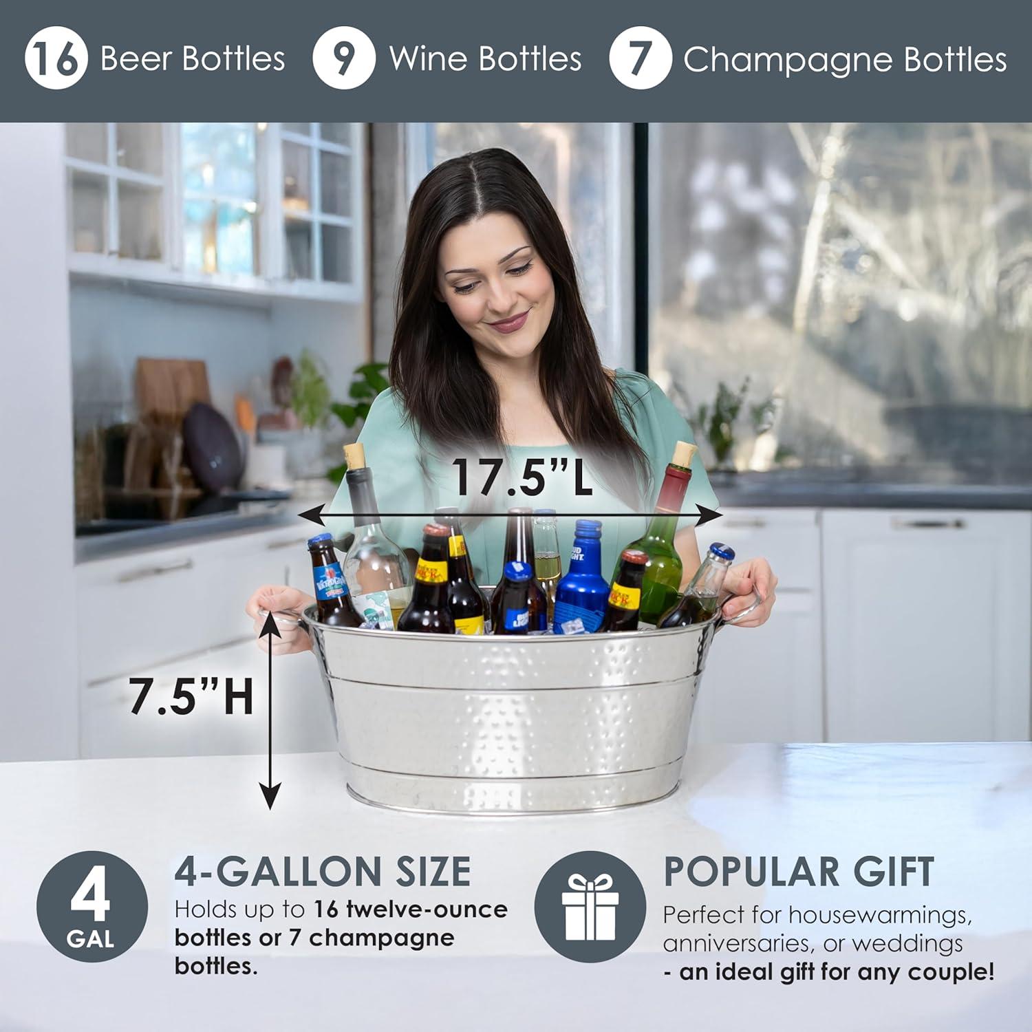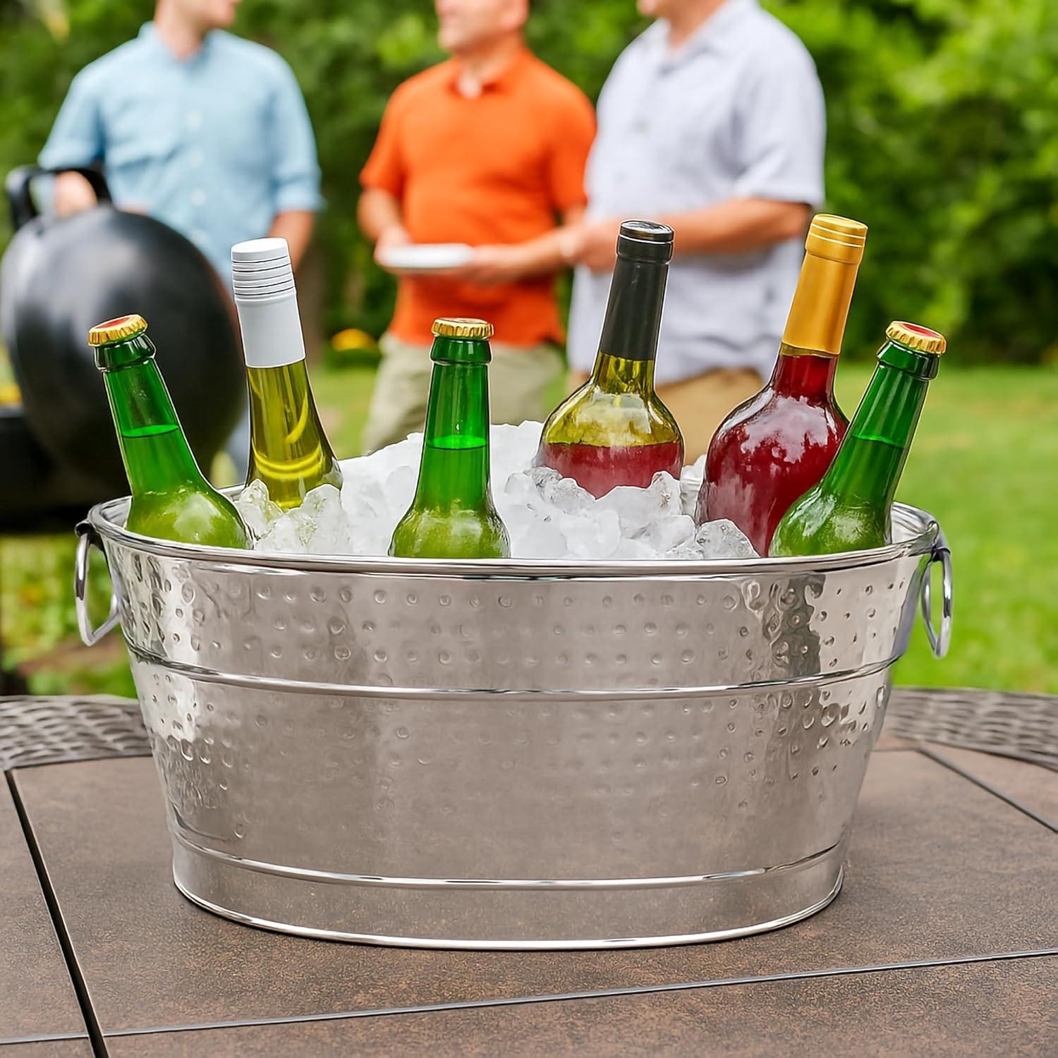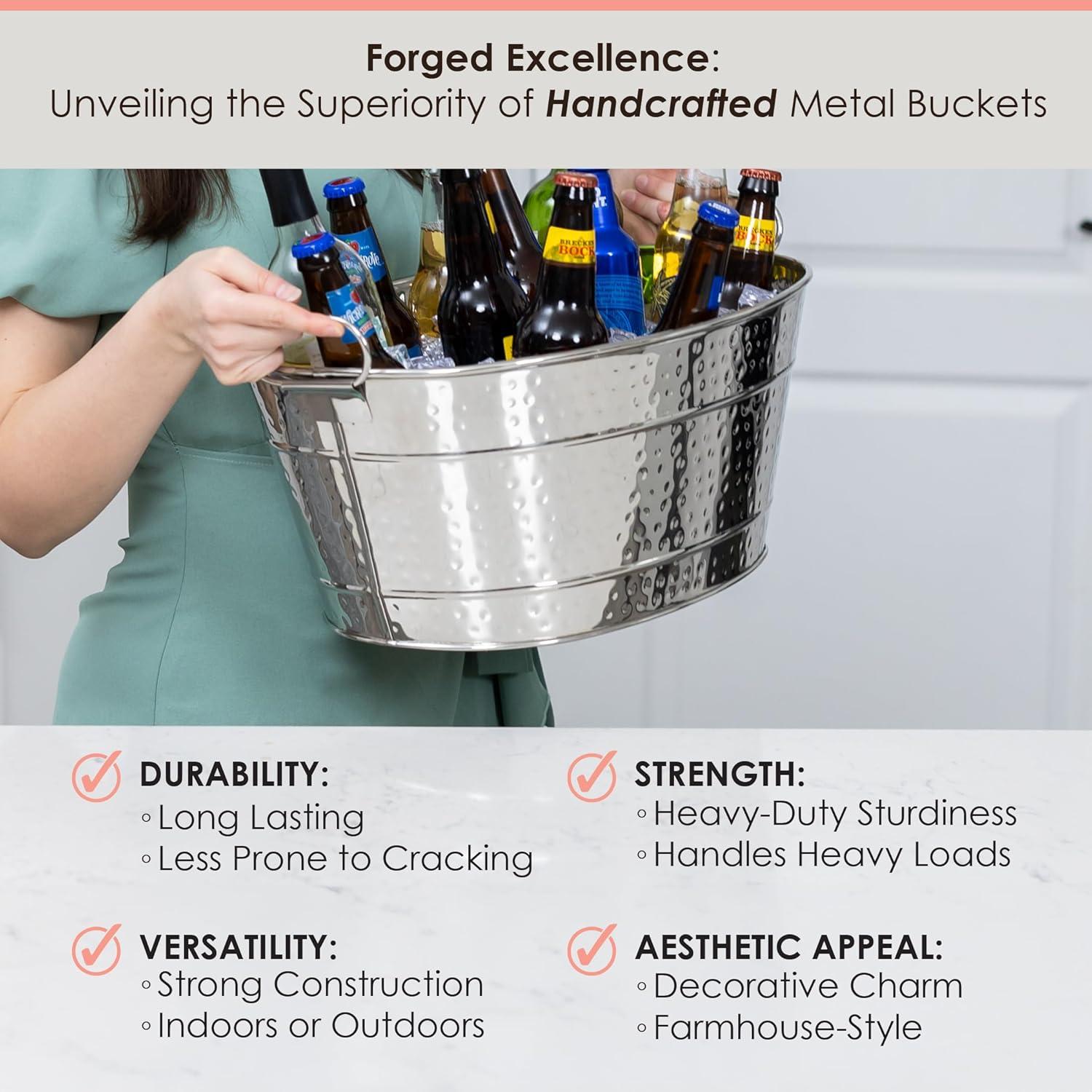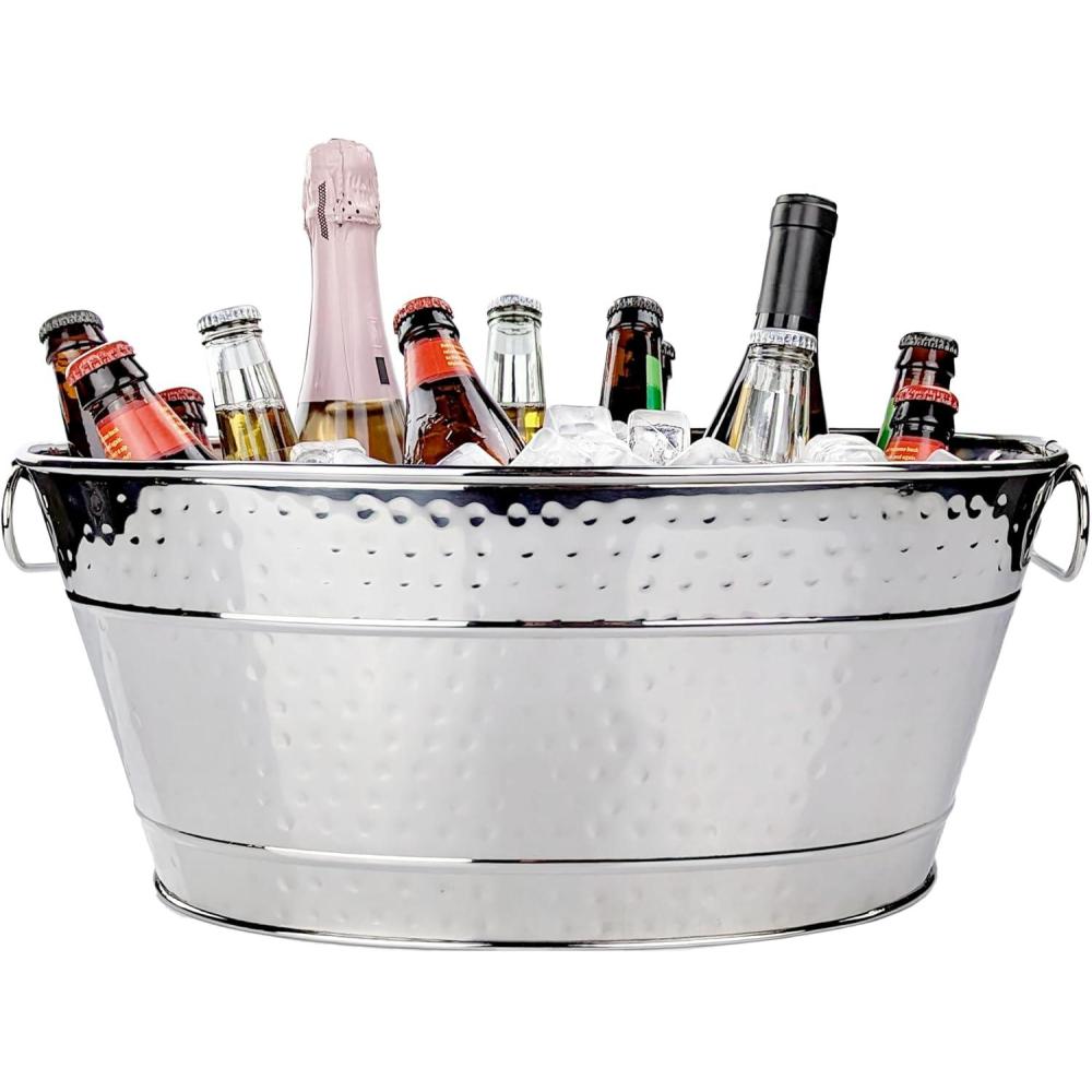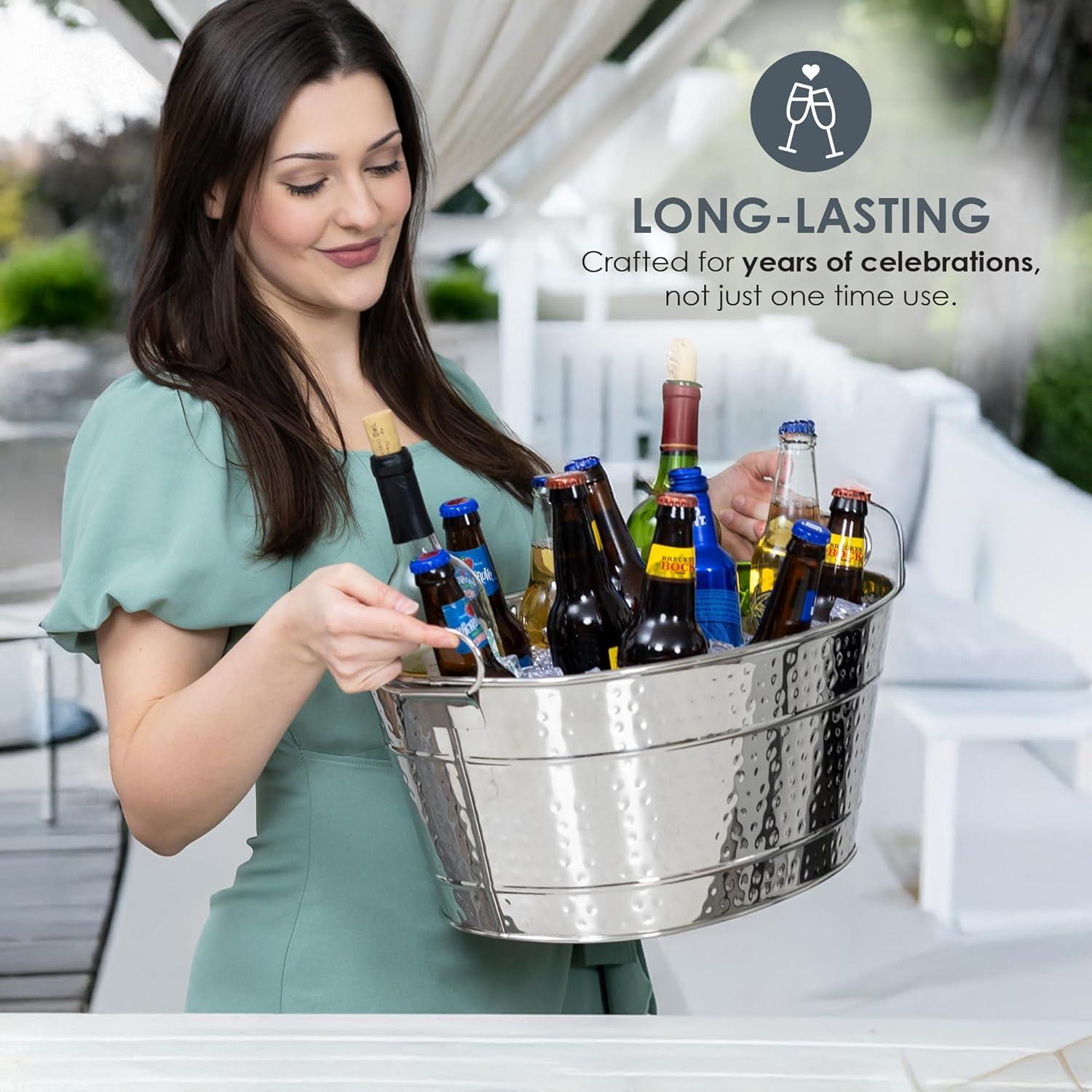 KEEP DRINKS COLD: Keep all of your favorite beverages chilled in this metal cooler. Ideal metal tub for use as a champagne bucket, a wine bucket, or beer bucket.